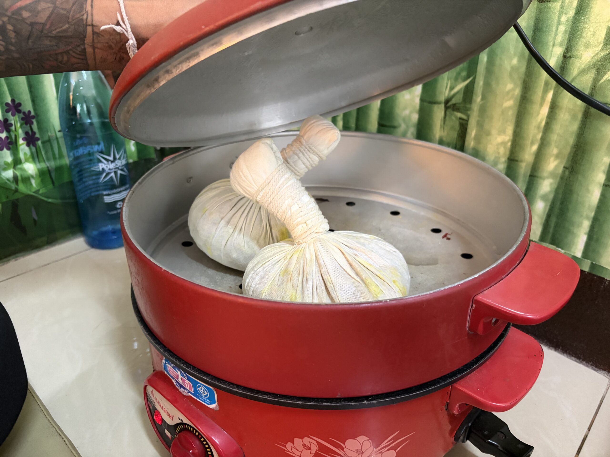 頭も預けてゆったり座れる専用の椅子に腰掛けて、タオルガウンのみで天然ハーブで蒸したテント内に入っていただきます。「子宮集中ケア」を目的に、タイ伝統医によるオリジナルブレンドのハーブを使用します。30分〜45分程度(休みながら)温まっていただいた後、腸を中心にチネイザンを行って全身を緩めるケアをしていきます。